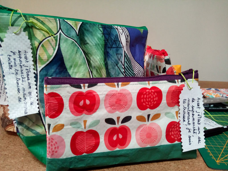 La rencontre qui donnera naissance à la marque MaBricole c'est celle de l'artiste et d'un sac cabas de supermarché aux motifs inspirants en 2011!